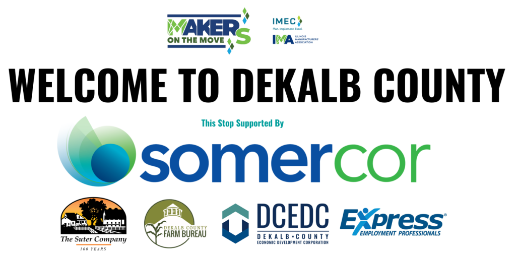 October is Manufacturing Month and the Illinois Manufacturers’ Association (IMA) and Illinois Manufacturing Excellence Center (IMEC) are back on the road with their “Makers On The Move” Bus Tour! DeKalb County is once again a featured stop on their bus tour – Join us at The Suter Company in Sycamore to be part of this community event!